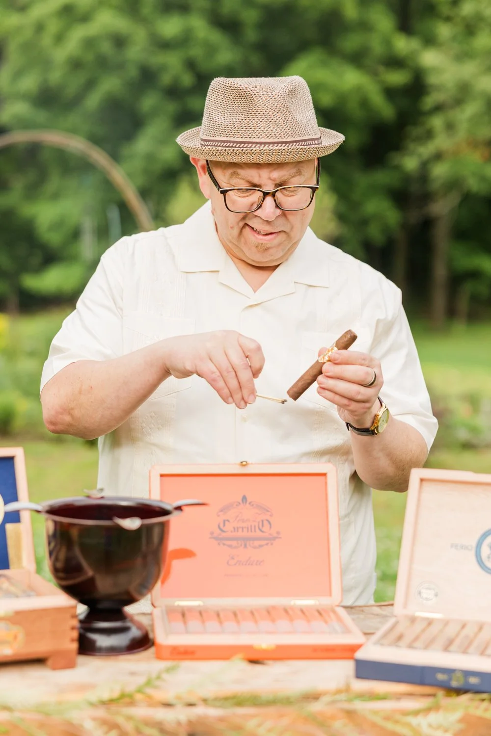 With over 30 years as a cigar enthusiast, six years as an industry representative, and nearly two years as co-owner of a premium lounge, I bring deep product knowledge and service expertise to every event. Coupled with a decade of photographing weddings alongside my wife, I understand how important it is for vendors to be seamless, calm, and unobtrusive.